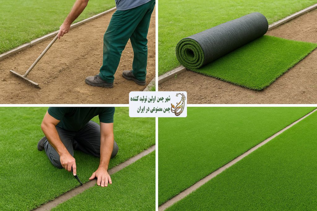 در این مرحله، رول های چمن مصنوعی با دقت باز شده و روی بستر آماده شده پهن می شوند. اتصال بین رول ها با استفاده از چسب های مخصوص و نوارهای درزگیر انجام می شود تا سطح یکپارچه و مستحکمی ایجاد گردد. سپس با ریختن مواد پرکننده مانند سیلیکون و گرانول لاستیکی، چمن به حالت طبیعی و قابل استفاده نزدیک می شود.