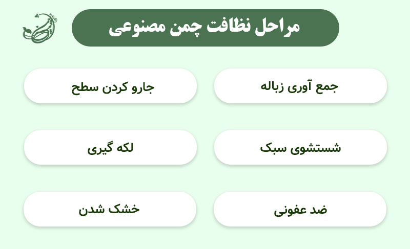 | جمعآوری برگها و زبالهها | روزانه | جاروی نرم یا پلاستیکی | پاکسازی سریع و روزانه، جلوگیری از تجمع آلودگی |