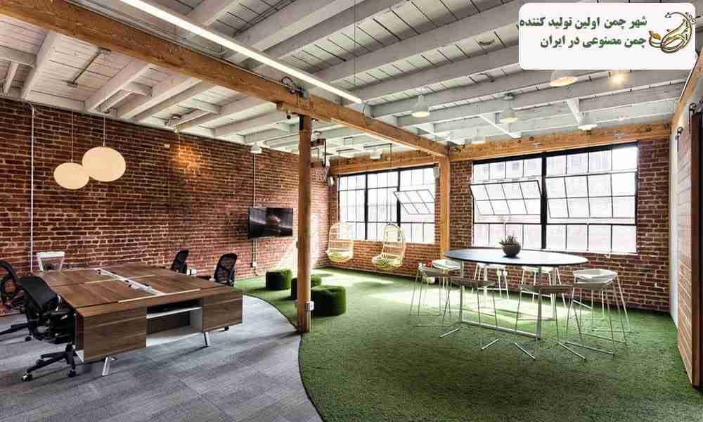 با نصب چمن مصنوعی فضای اداری در فضاهای مشترک، اتاق های استراحت یا حتی زیر میز کارکنان، می توان فضایی دلپذیر و آرامش بخش به وجود آورد که باعث افزایش رضایت شغلی شود. همچنین، استفاده از این چمن ها در اتاق کنفرانس و سالن جلسات موجب ایجاد فضایی حرفه ای با حس و حالی غیررسمی و صمیمی تر می گردد.