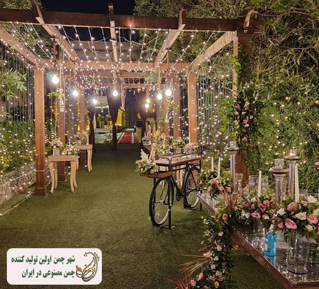 - تزیین بخش هایی مانند جایگاه عروس و داماد با استفاده از طرح های خاص چمن مصنوعی با رنگ های متنوع.